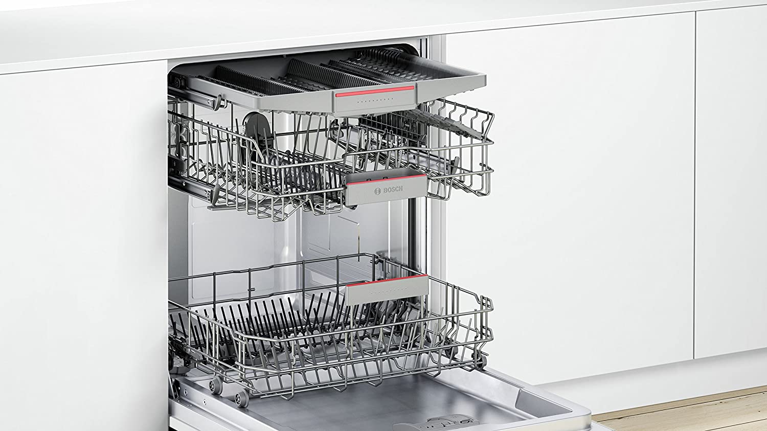 - Rackmatic – height-adjustable upper basket (three-stage)